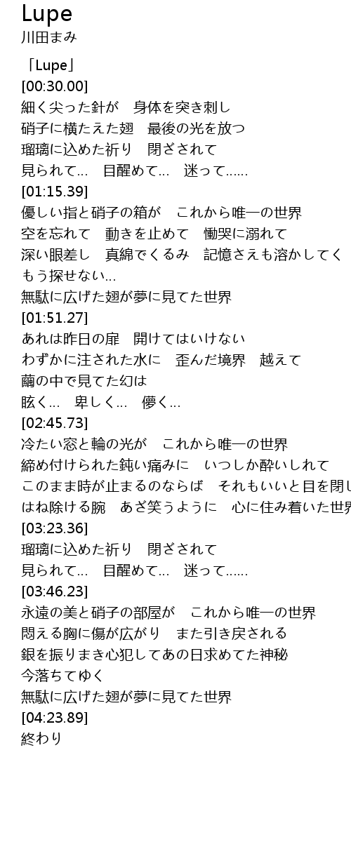 | [03:46.57] | 永遠の美と硝子の部屋が これから唯一の世界 |