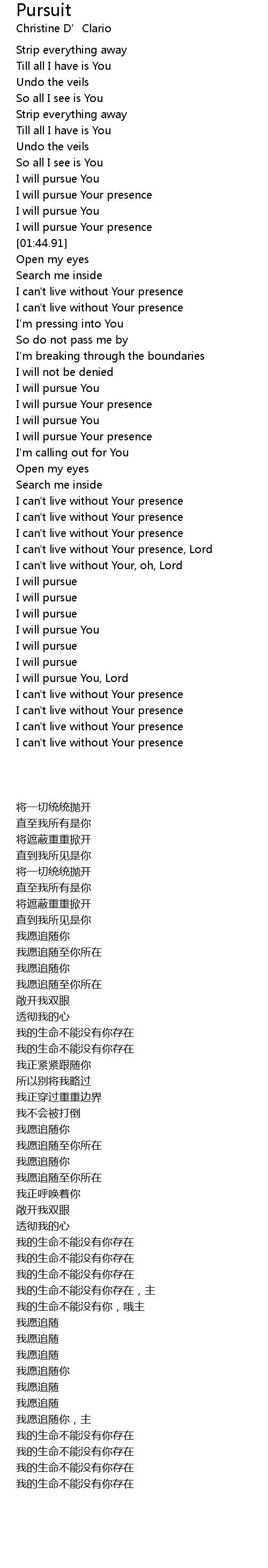 [01:32.75] I will pursue Your presence