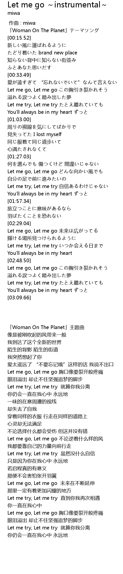 | [00:08.85] | 「Woman On The Planet」テーマソング |