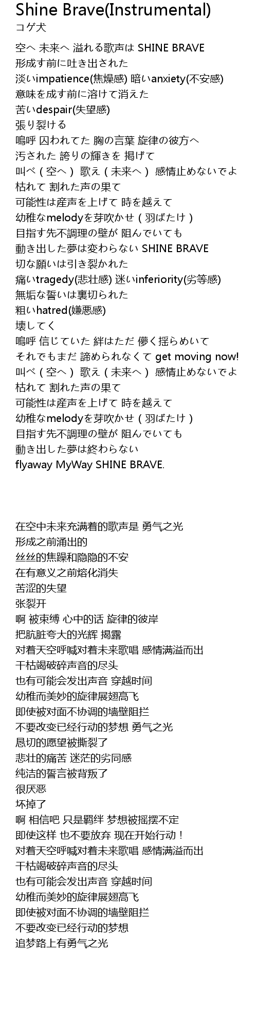 | [00:01.75] | kōng wèi lái yì gē shēng SHINE BRAVE |