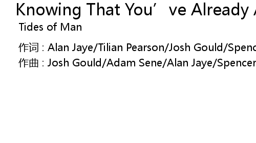 | [00:00.000] | 作词 : Alan Jaye/Tilian Pearson/Josh Gould/Spencer Gill/Adam Sene |