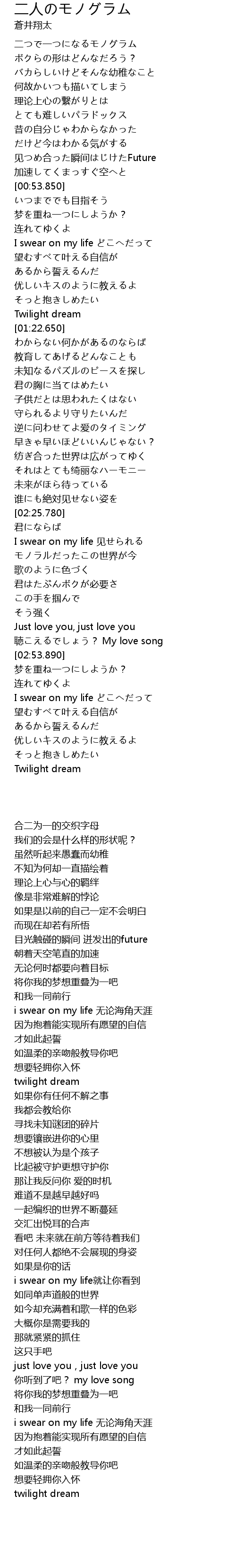 | [00:59.690] | 梦を重ね一つにしようか? |