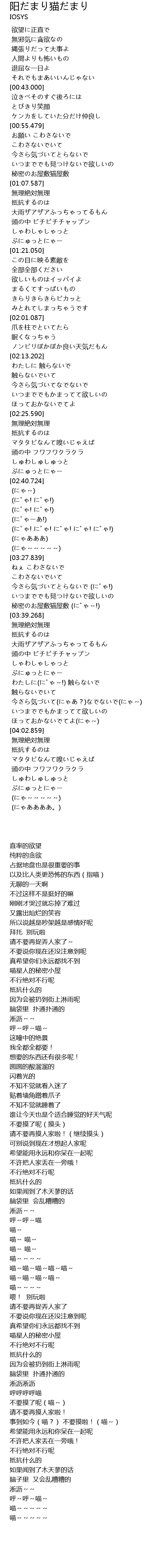 | [03:54.391] | 今さら気づいて(にゃあ?)なでないで(にゃ~) |