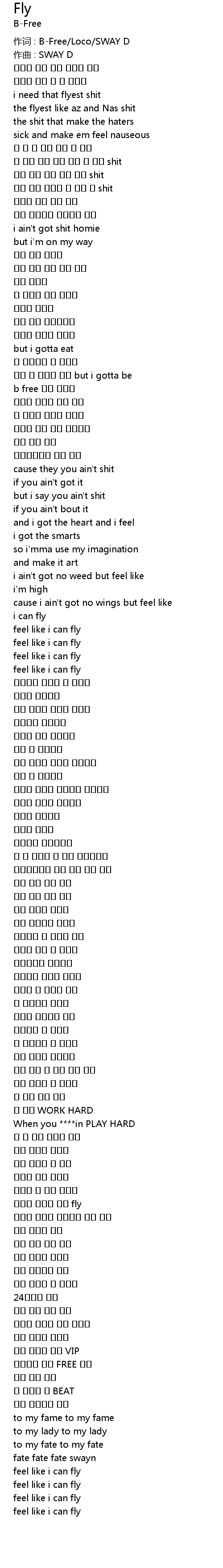 | 作词 : B-Free/Loco/SWAY D | |
