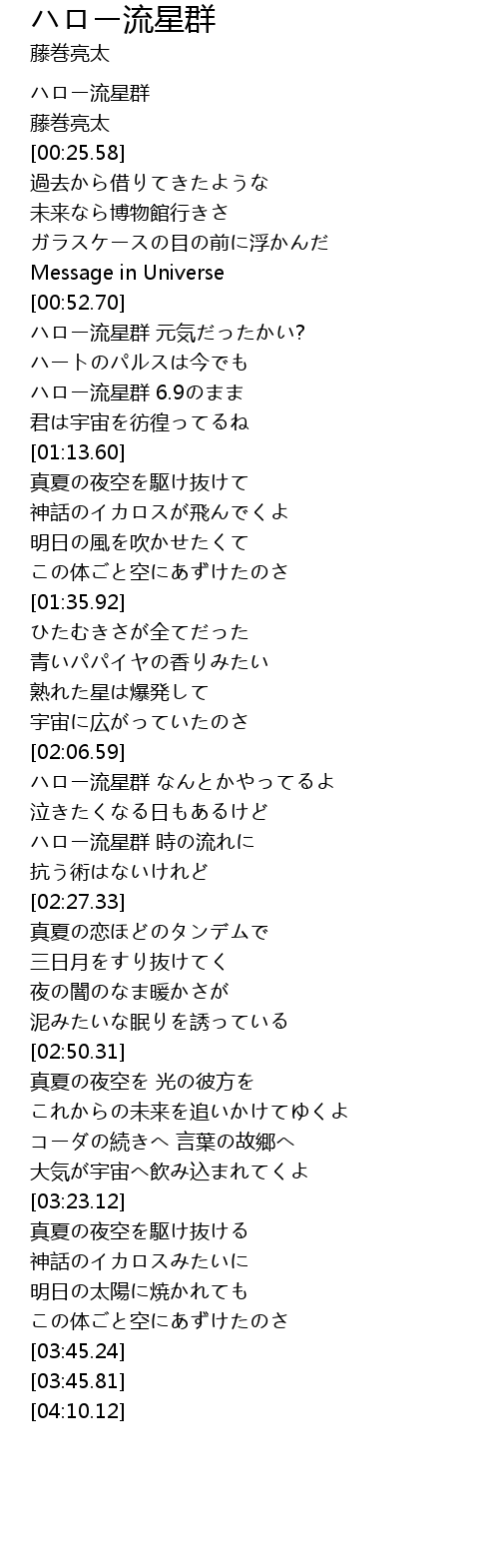 | [00:52.97] | ハロー流星群 元気だったかい? |