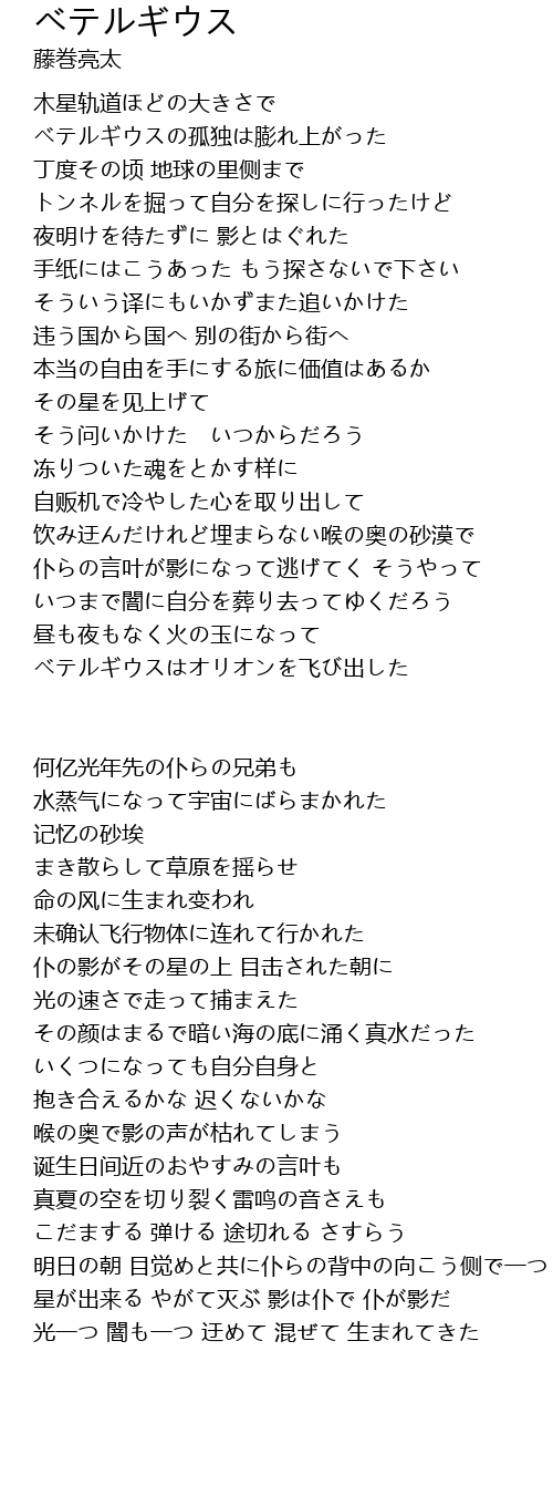 | 星が出来る やがて灭ぶ 影は仆で 仆が影だ | |