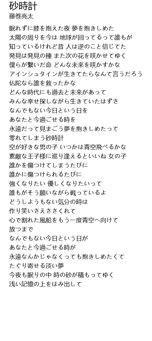 | 今夜も眠りの中 時の砂が積もってゆく | |