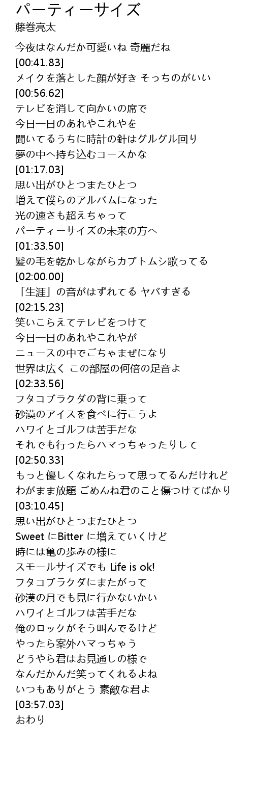 | [01:28.24] | パーティーサイズの未来の方へ |