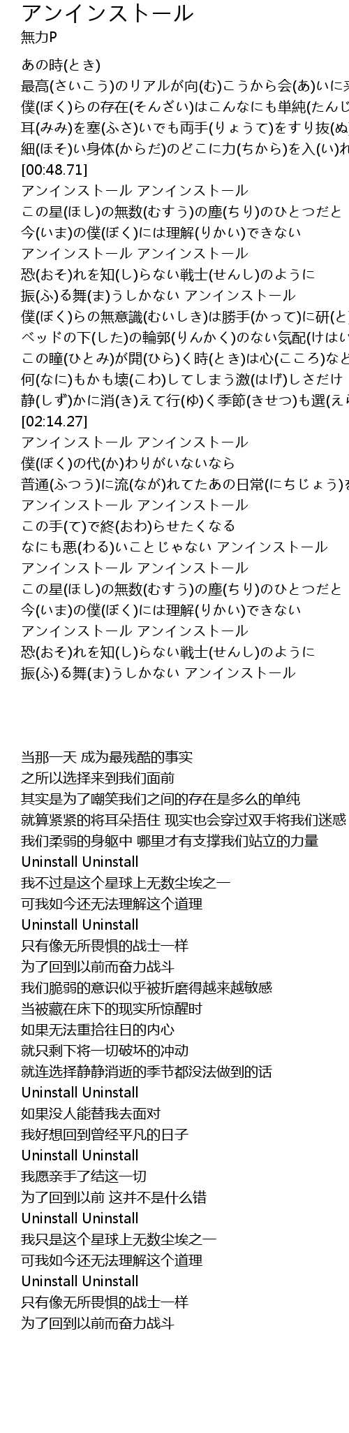 | [02:42.40] | なにも悪(わる)いことじゃない アンインストール |
