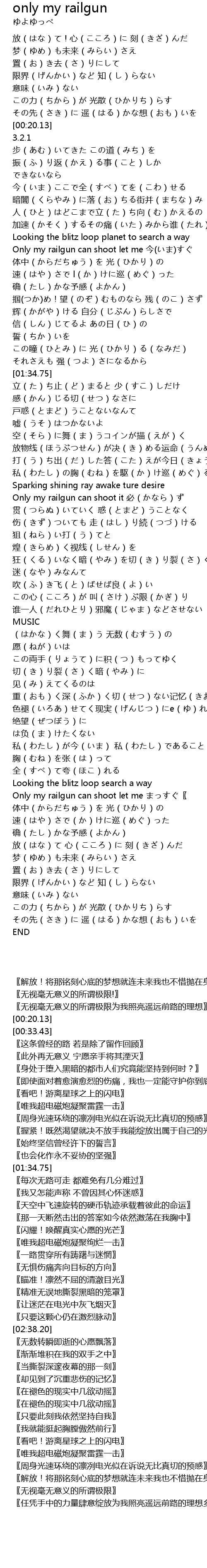 | [01:06.23] | Only my railgun can shoot let me 今(いま)すぐ |