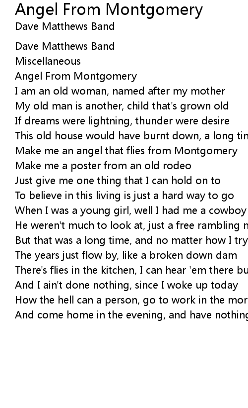 Make me an angel that flies from Montgomery |