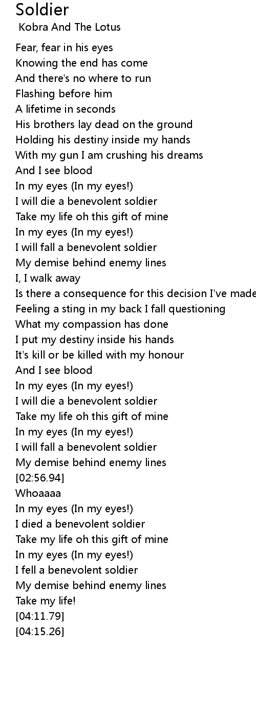I will fall a benevolent soldier |