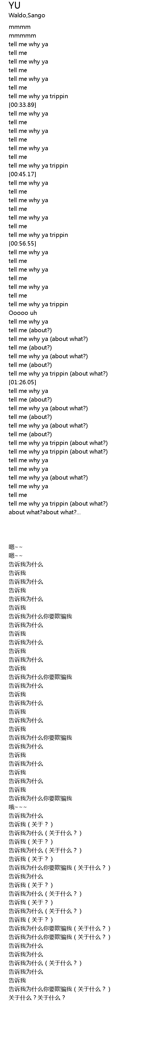 | [01:33.64] | tell me why ya (about what?) |