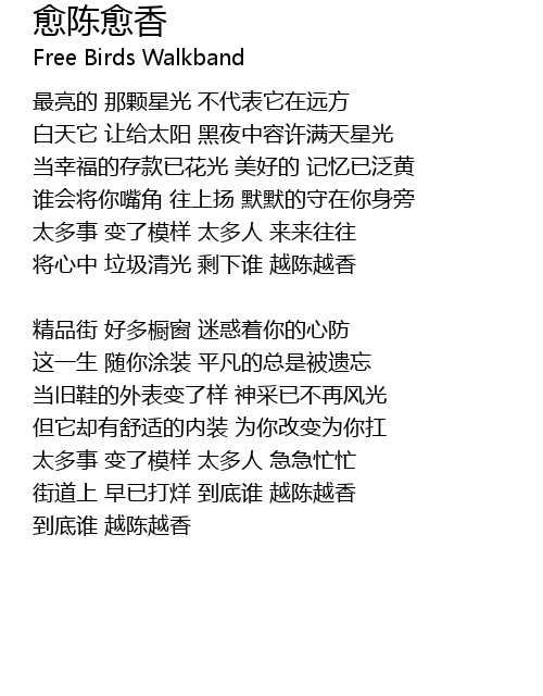 | 街道上 早已打烊 到底谁 越陈越香 | |