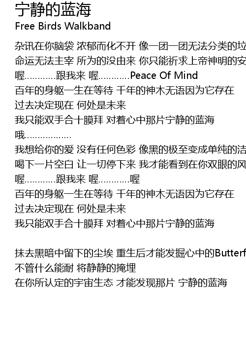 | wo zhi neng shuang shou he shi mo bai dui zhe xin zhong na pian ning jing de lan hai | |