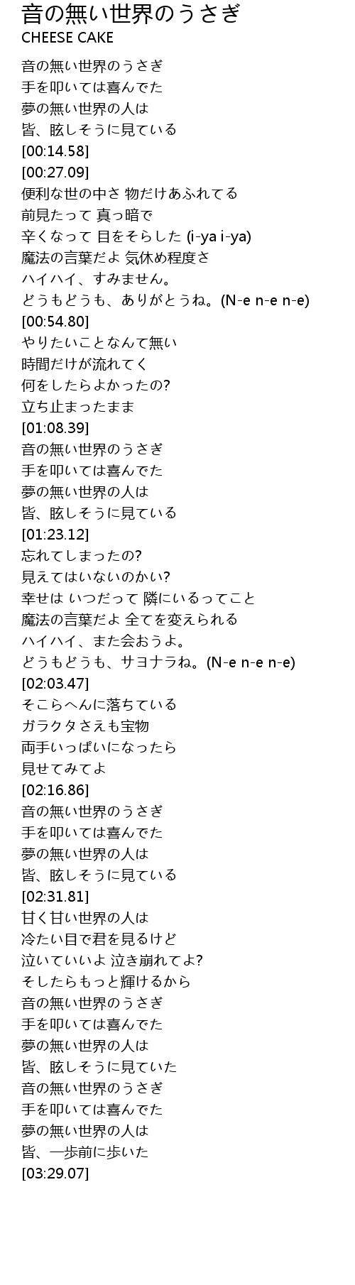 | [01:58.53] | どうもどうも、サヨナラね。(N-e n-e n-e) |