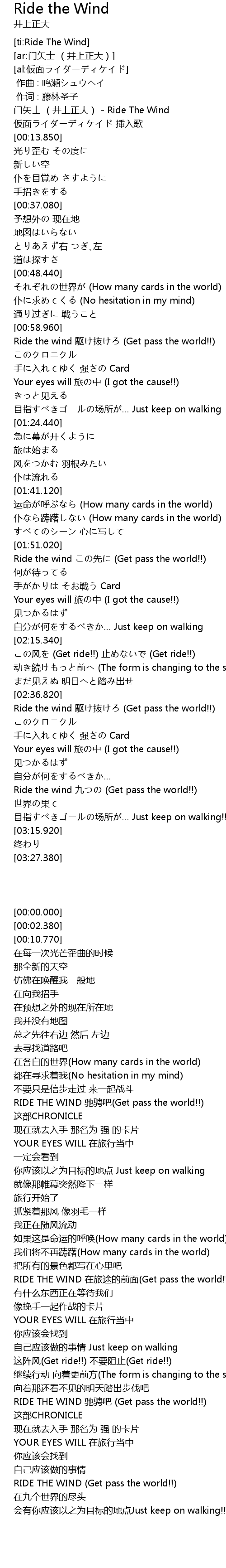 | [02:38.640] | Ride the wind 駆け抜けろ (Get pass the world!!) |