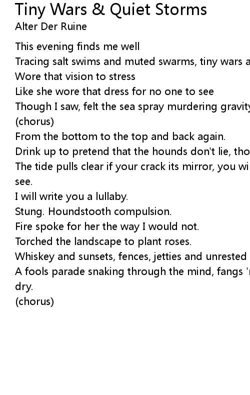 Tracing salt swims and muted swarms, tiny wars and quiet storms.