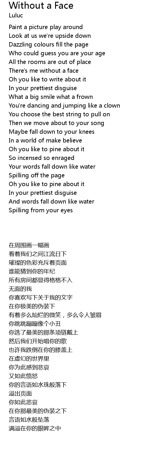 | [00:39:220] | There's me without a face |