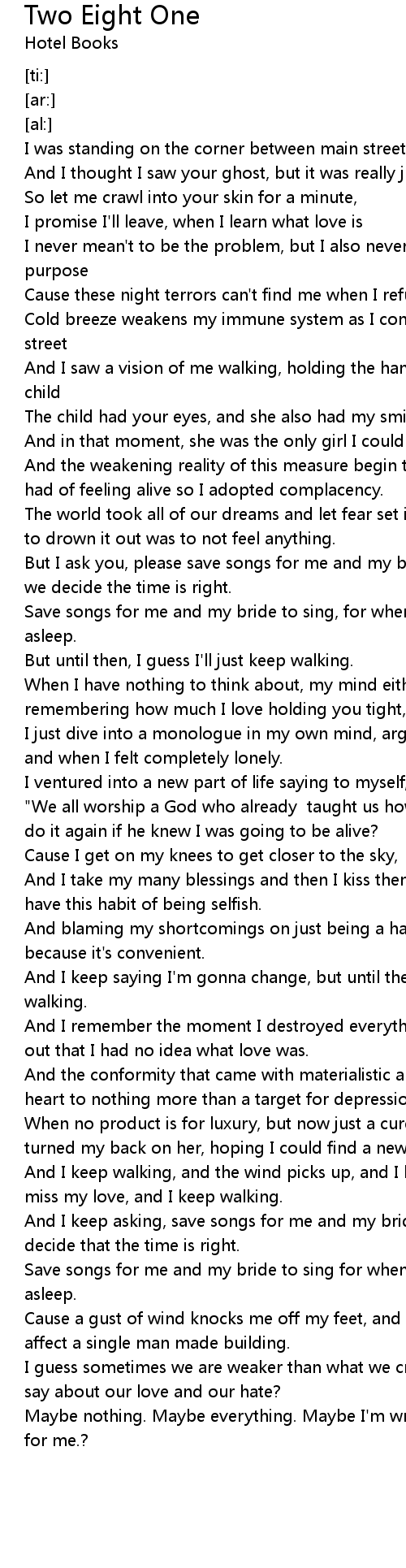 Two Eight One Lyrics