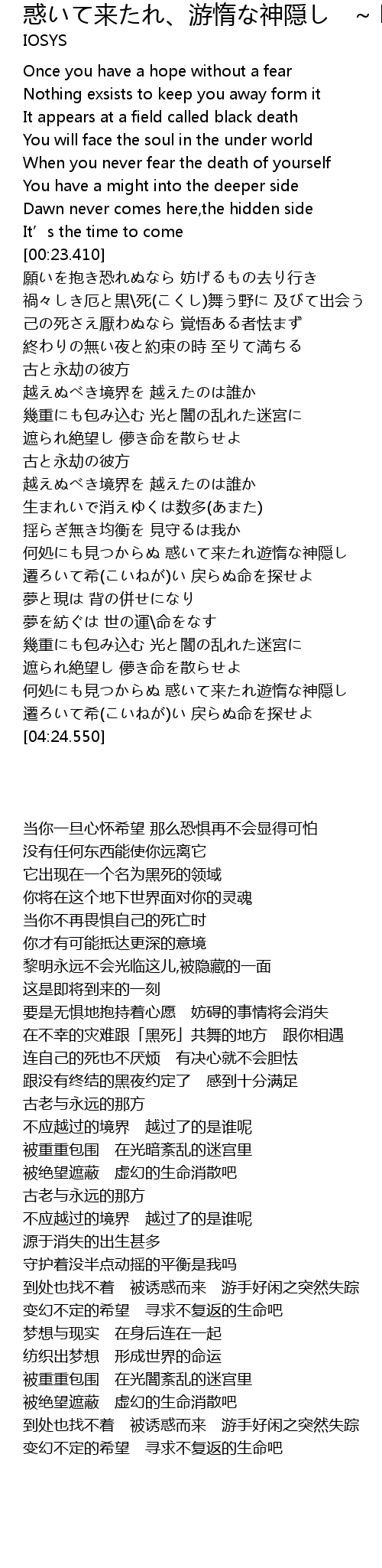| [04:01.180] | 何処にも見つからぬ 惑いて来たれ遊惰な神隠し |