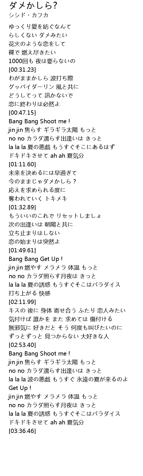 | [02:56.79] | jin jin 焦らす ギラギラ太陽 もっと |