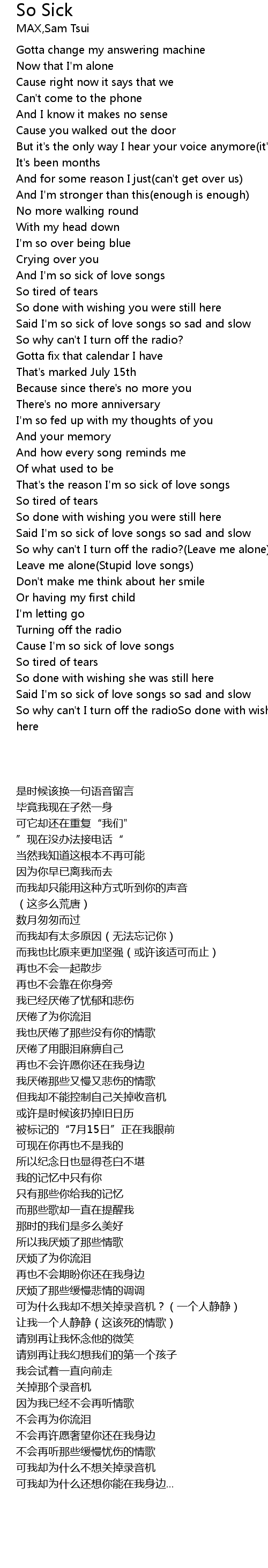 | [02:48.51] | So why can't I turn off the radioSo done with wishing she was still here |