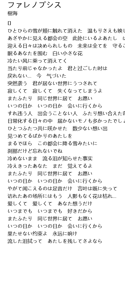 | ひとひらの雪が颊に触れて消えた 温もりさえも映し出される 记忆 | |