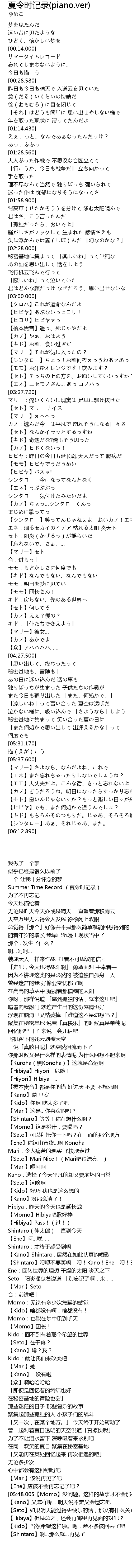 | [05:48.050] | 【モモ】大丈夫だよ。こんな话、きっと忘れないよ |
