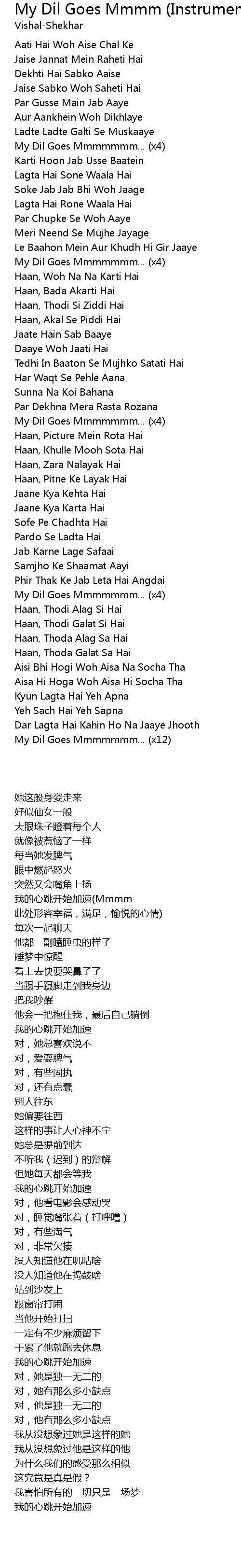 My Dil Goes Mmmm (Instrumental) Lyrics