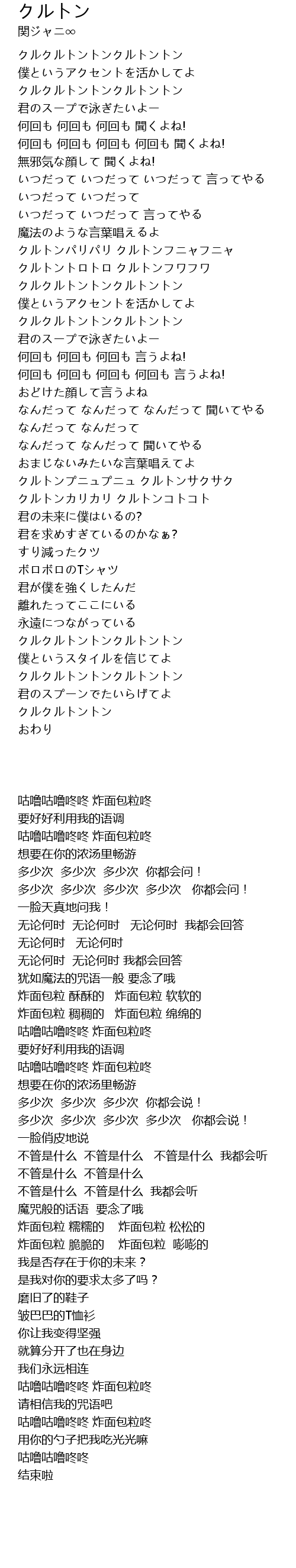 | [02:15.61] | クルトンカリカリ クルトンコトコト |