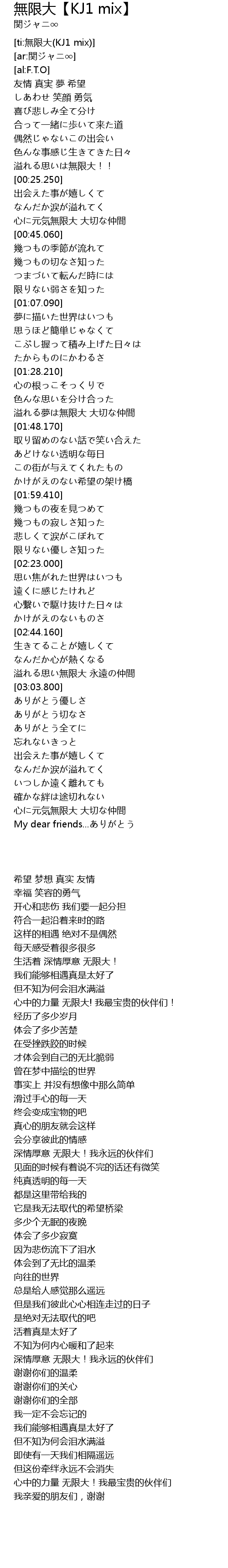 | [02:54.740] | 溢れる思い無限大 永遠の仲間 |