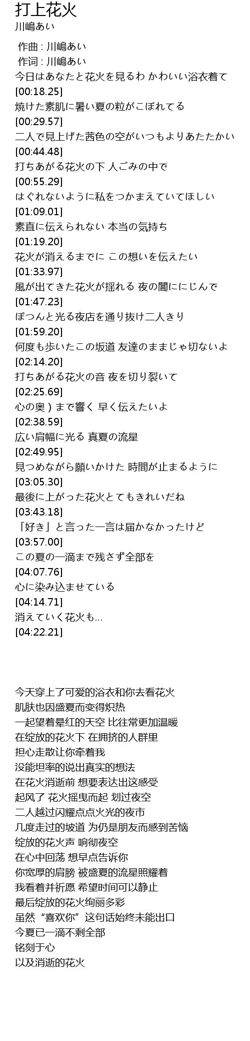 | [03:33.75] | 最後に上がった花火とてもきれいだね |