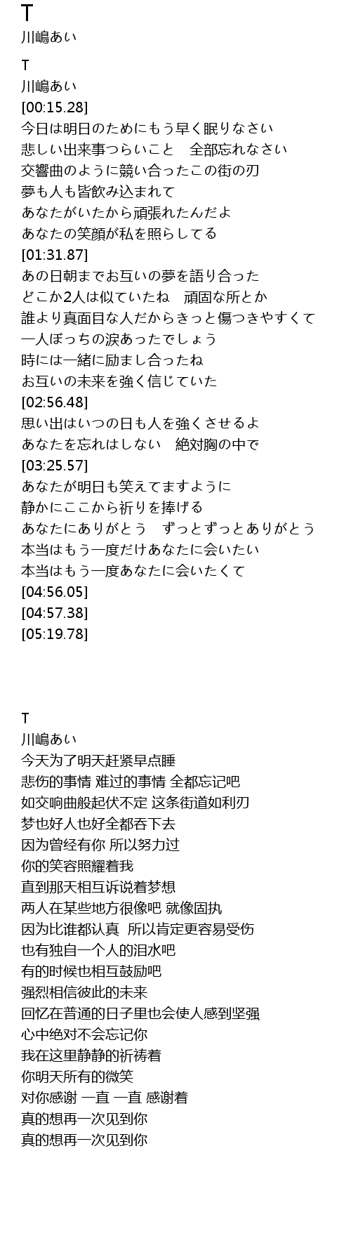 | [04:15.57] | あなたにありがとう ずっとずっとありがとう |