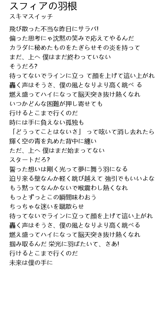 | 轟く声はそうさ、僕の風となりより高く跳べ る | |