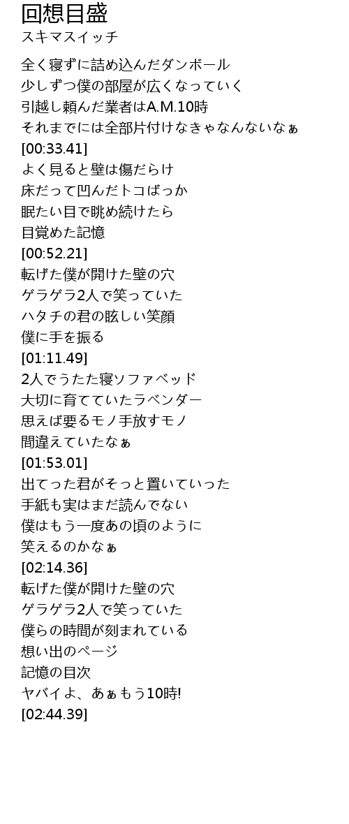 | [02:33.50] | 記憶の目次 |