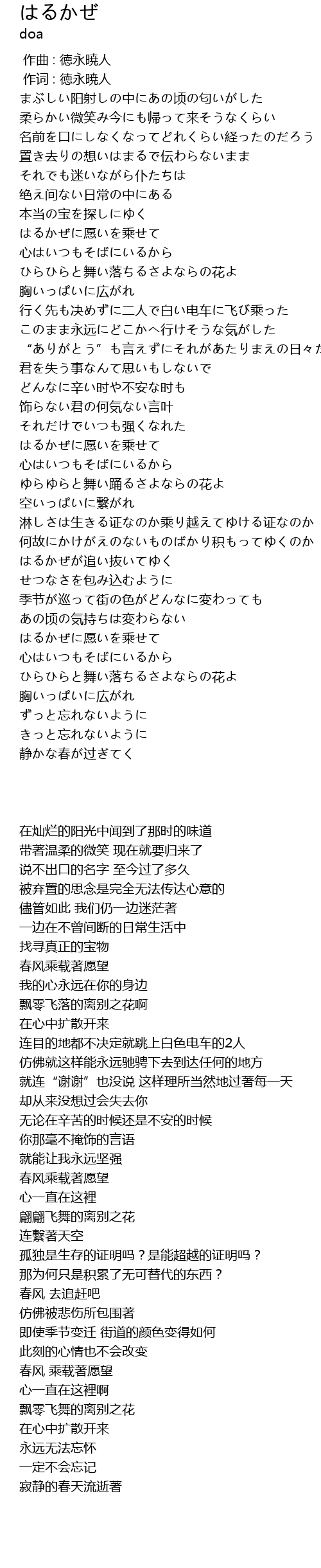 | [02:19.970] | はるかぜに愿いを乘せて |