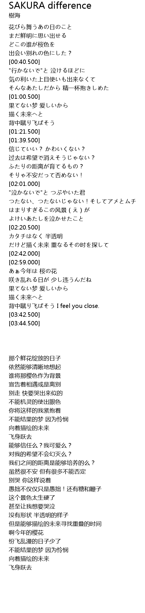 | Song | SAKURA difference |