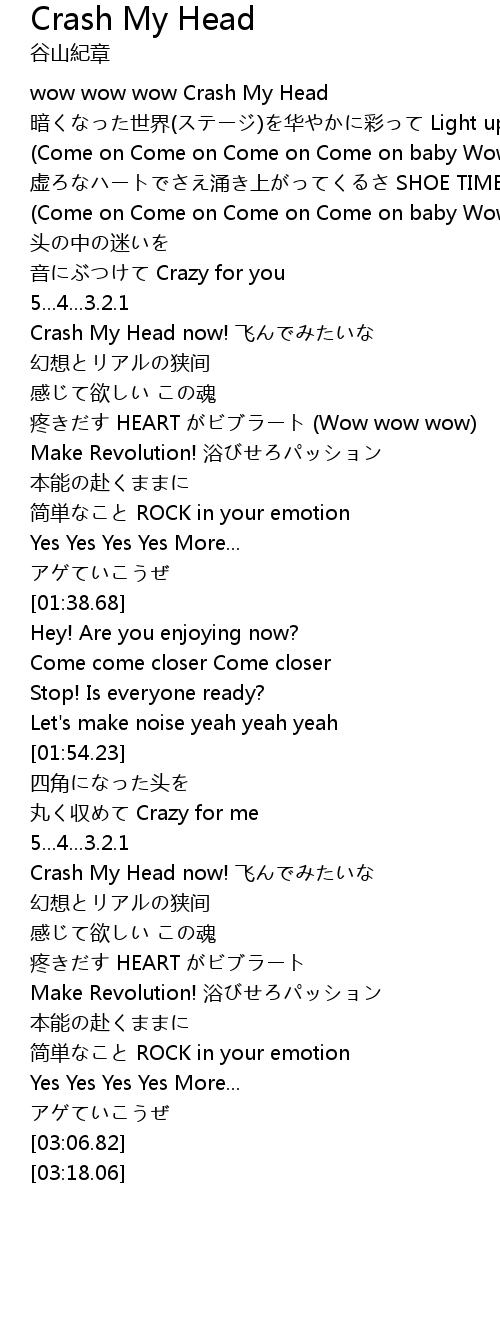 | [00:44.18] | 音にぶつけて Crazy for you |