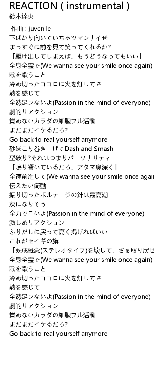 | Song | REACTION ( instrumental ) |