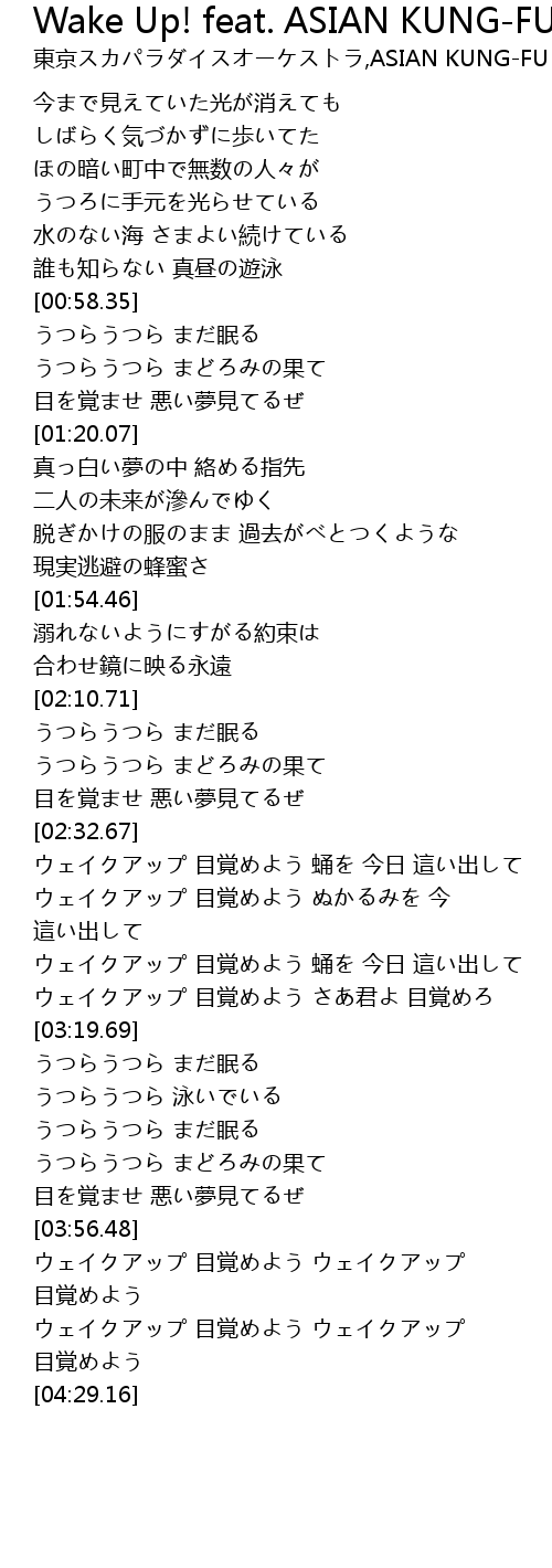 | [04:19.53] | ウェイクアップ 目覚めよう ウェイクアップ 目覚めよう |