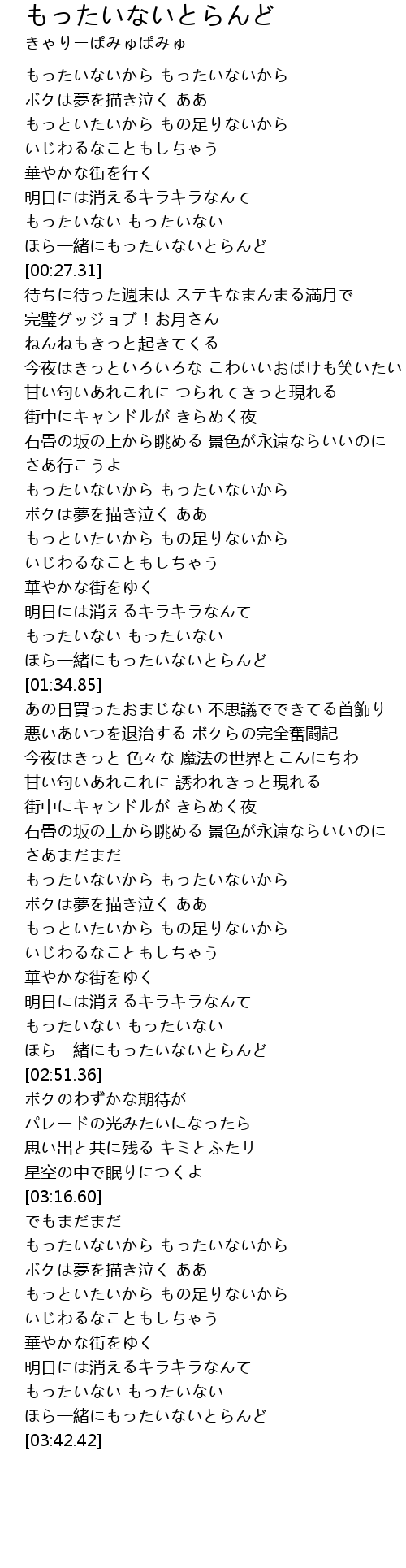 | [01:31.42] | ほら一緒にもったいないとらんど |