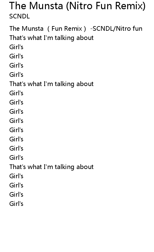 | [00:00.386] | The Munsta (Fun Remix) -SCNDL/Nitro fun |