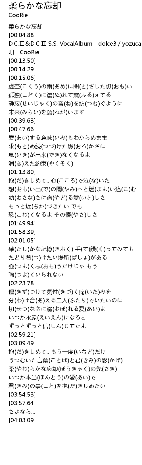 | [00:02.91] | 柔らかな忘却 |
