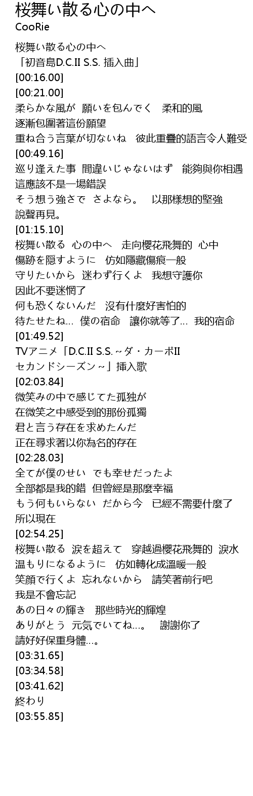 | [01:51.52] | TVアニメ「D.C.II S.S.~ダ・カーポII セカンドシーズン~」挿入歌 |