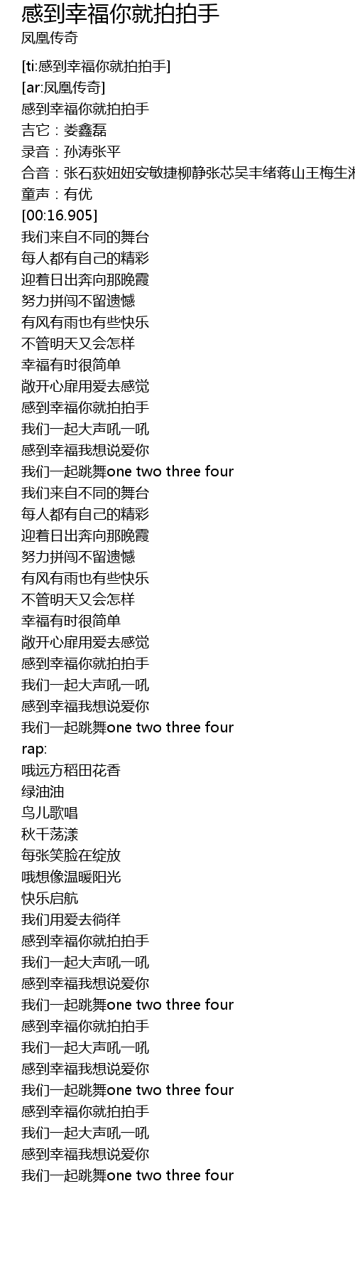 | [00:00.325] | 感到幸福你就拍拍手 |
