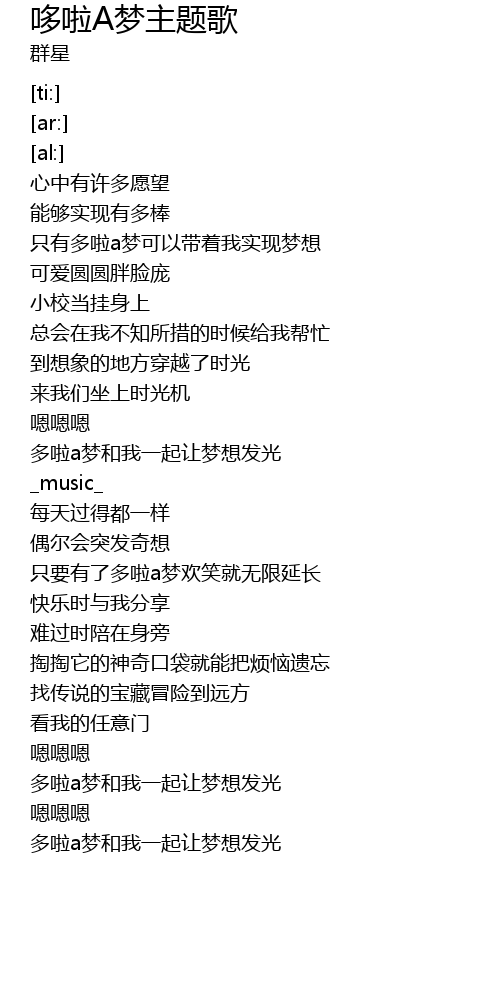| [02:01.95] | 多啦a梦和我一起让梦想发光 |