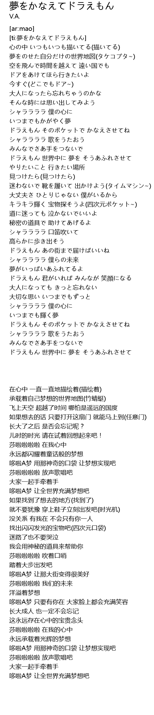 | [03:47.270] | ドラえもん 世界中に 夢を そうあふれさせて |