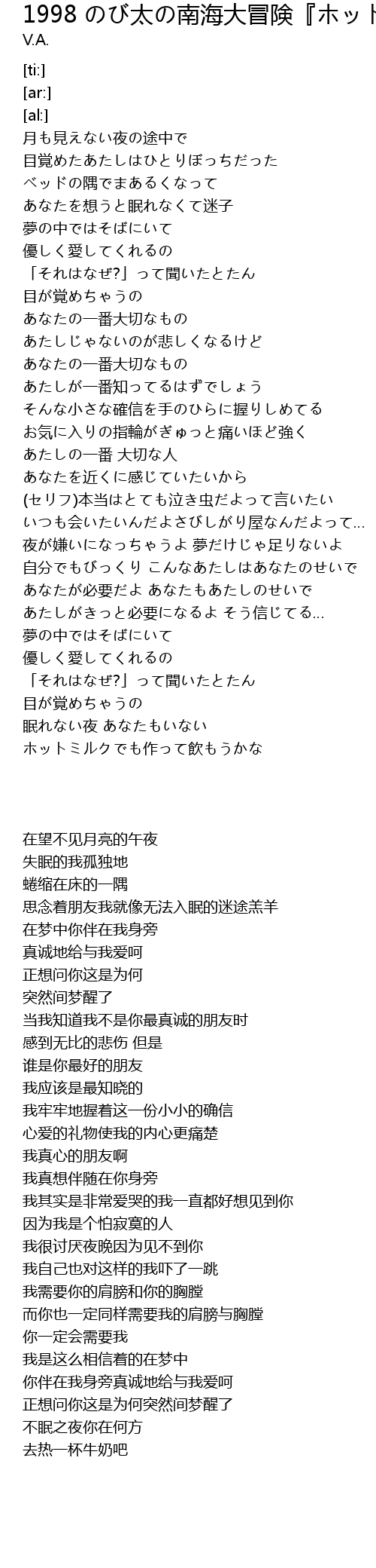 | Song | 1998 のび太の南海大冒険『ホットミルク』 |