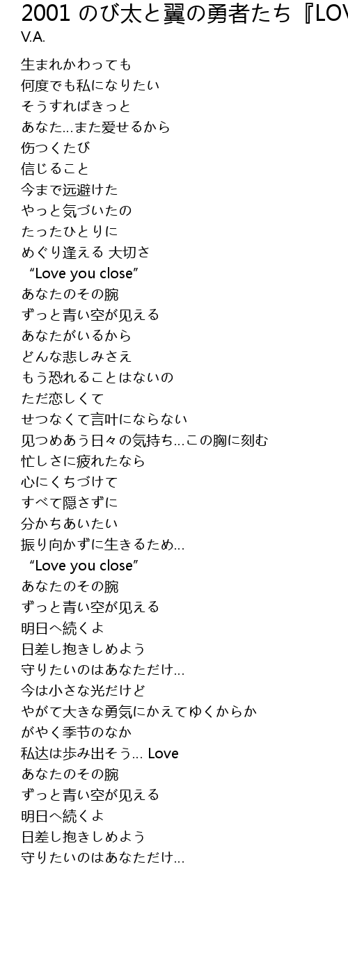 | Song | 2001 のび太と翼の勇者たち『LOVE YOU CLOSE』 |